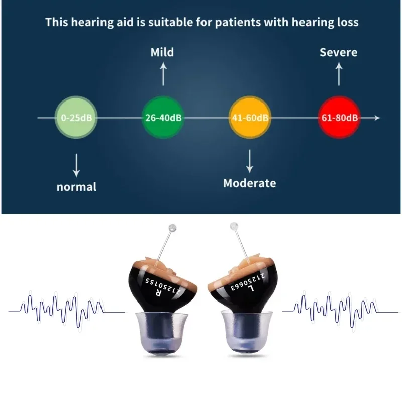 Apparecchio acustico Q10 CIC, comodo, compatto e invisibile, adatto ai pazienti con perdita uditiva delicata a moderata e anziani