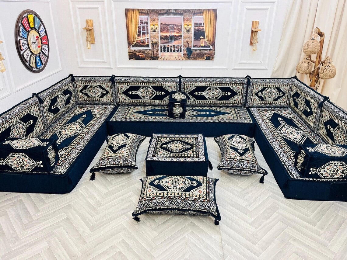 Divano ottomano da pavimento spesso 8 pollici, divano Majlis arabo, cuscino da pavimento per soggiorno, divano ottomano a forma di U, set di divani componibili