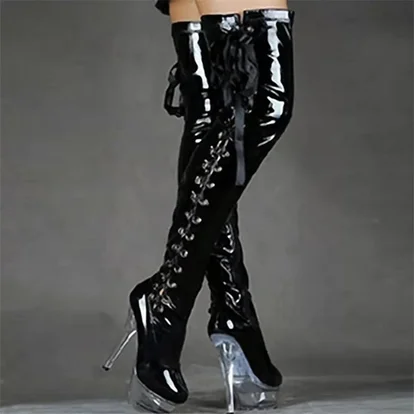 Nuovi stivali sopra il ginocchio di alta qualità Ragazze Lace Up Stivali da donna di moda 15 cm Tacchi a spillo Vendita calda Scarpe da donna dal 35al46